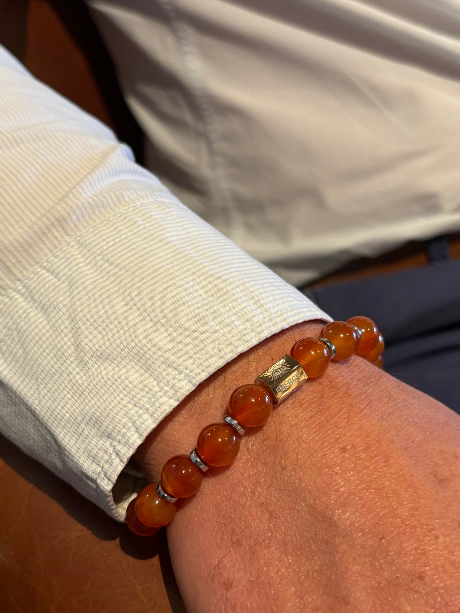 Un bracelet en pierres naturelles et acier inoxydable